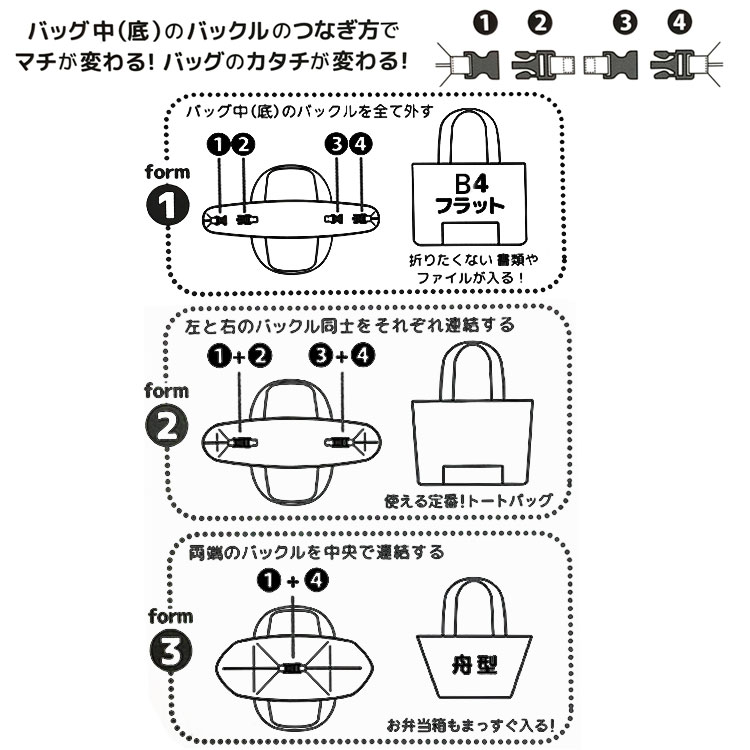 バッグ底のバックルの組み合わせでマチの形状を変えることができます☆
