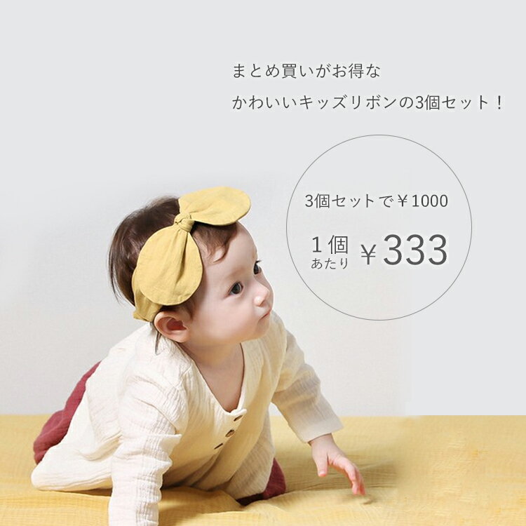 【キッズリボン3個セット】 大きなリボンが可愛いベビー用ヘアバンド。