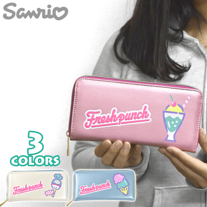 フェイクレザー フレッシュパンチ ラウンドファスナー 長財布 /レディース ラウンドジップ 長サイフ 財布 小銭入れあり 女性 かわいい おしゃれ 無地 シンプル 合成皮革 合皮 革 レザー 雑貨 グッズ Freshpunch サンリオ キャラクター パールシャイン レトロ スイーツ/