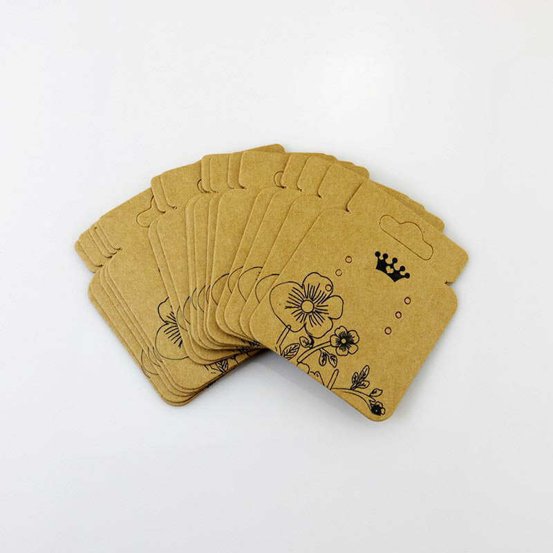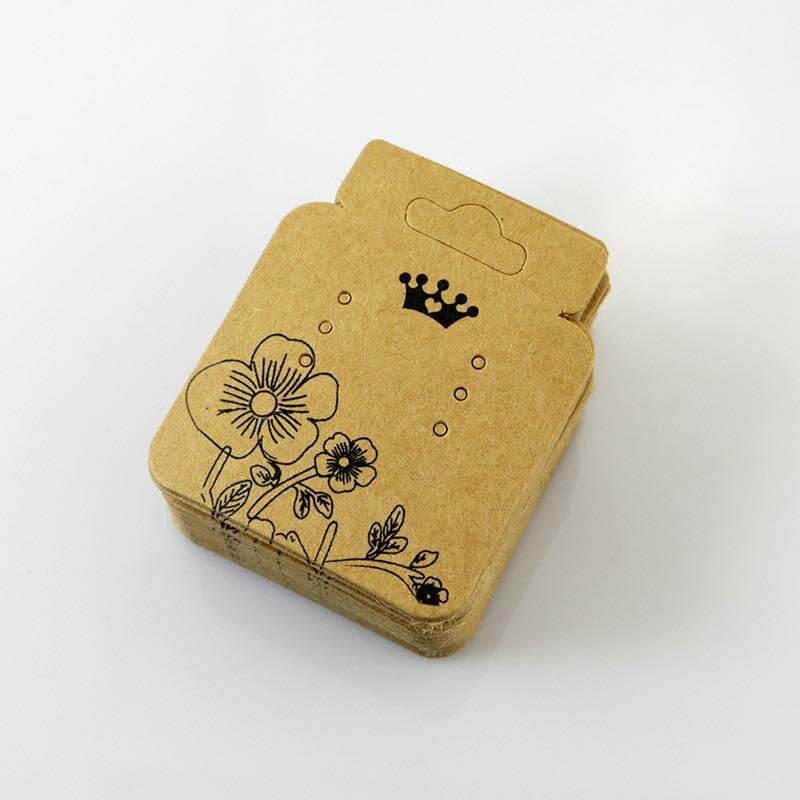 44mmx52mmフラワークラウンペーパータグ5枚セット ピアス台紙 アクセサリー台紙 ピアス用台紙 リングピアス フックピアス フープピアス キャッチピアス 茶色 ブラウン 花 フリーケット イヤリング 業務用 ハンドメイド 値札 ポップ スタッドピアス 穴が6個と大きい穴が2個